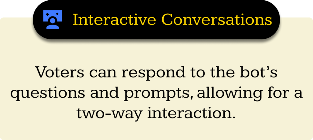 Voters can interact with the bot, ask questions, and provide feedback, making the communication process more dynamic and informative.